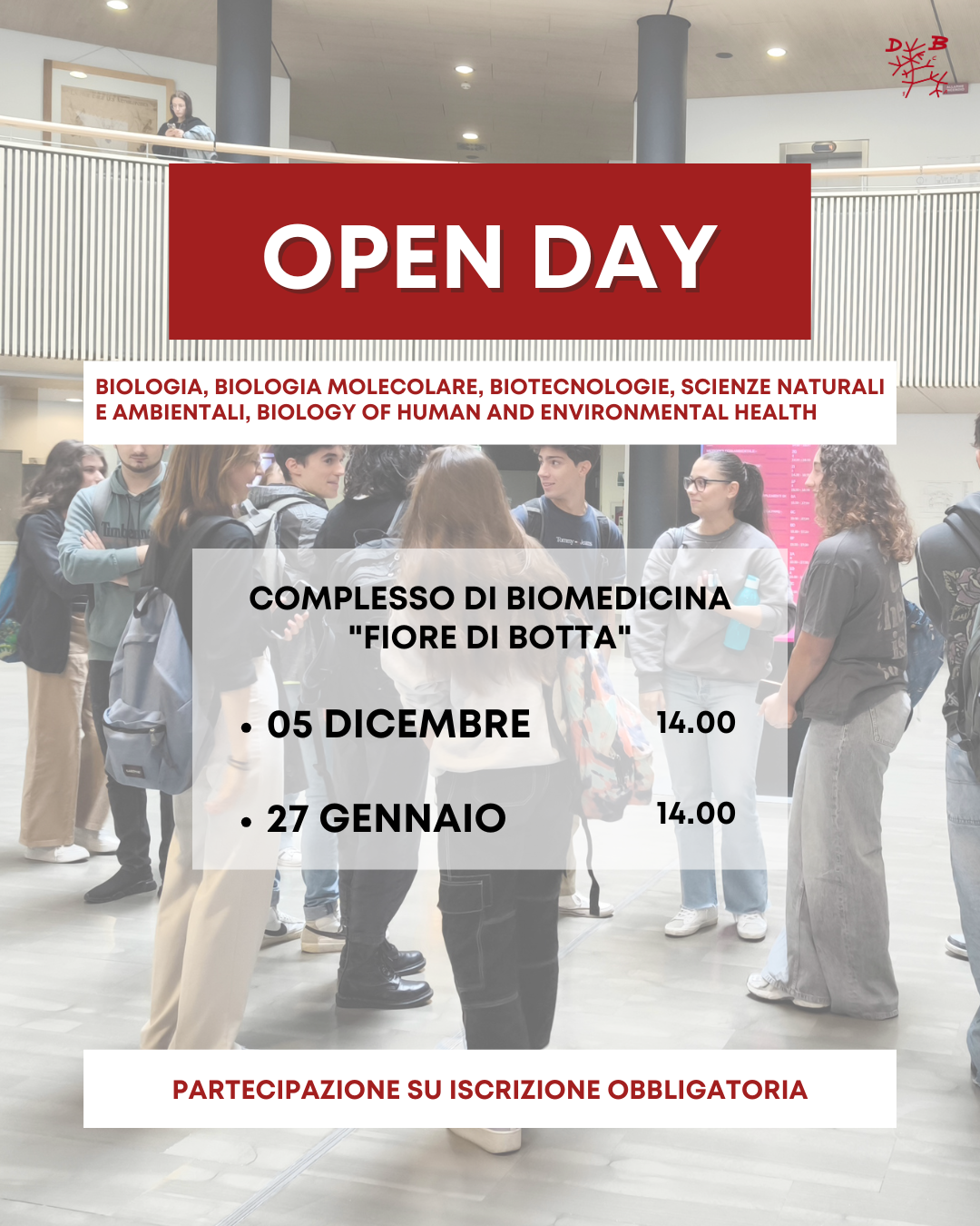 Open Day per i corsi di laurea in Biologia, Biologia Molecolare, Biotecnologie, Scienze Naturali e Ambientali, Biology of Human and Environmental Health